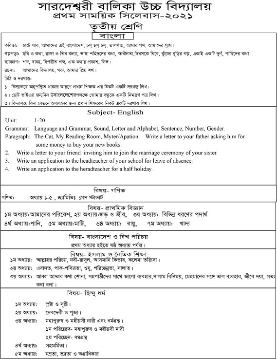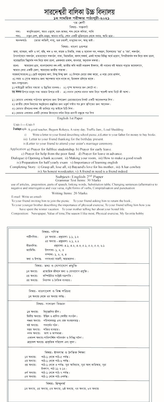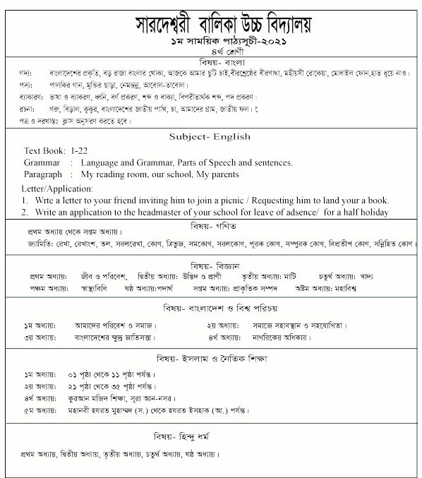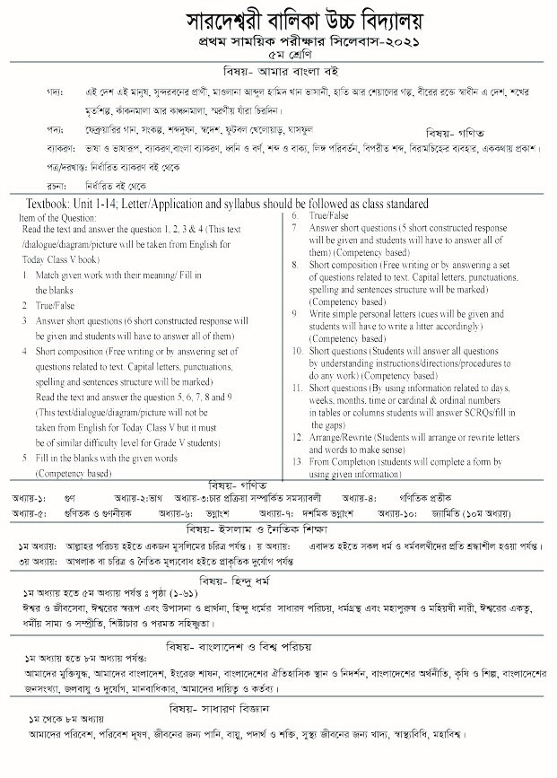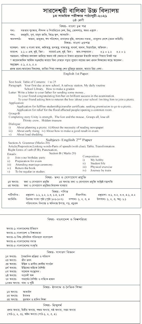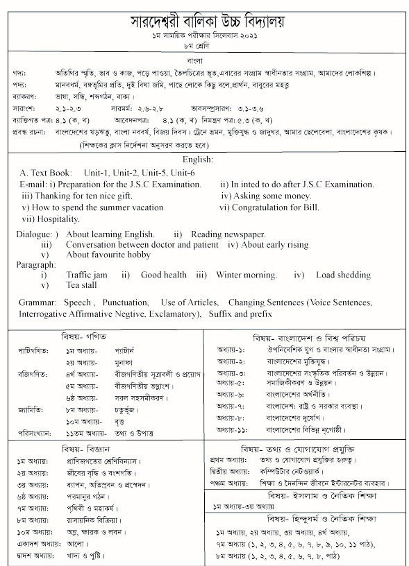2021 শিক্ষাবর্ষের অনলাইন ক্লাসসহ সাময়িক পরীক্ষার সিলোস